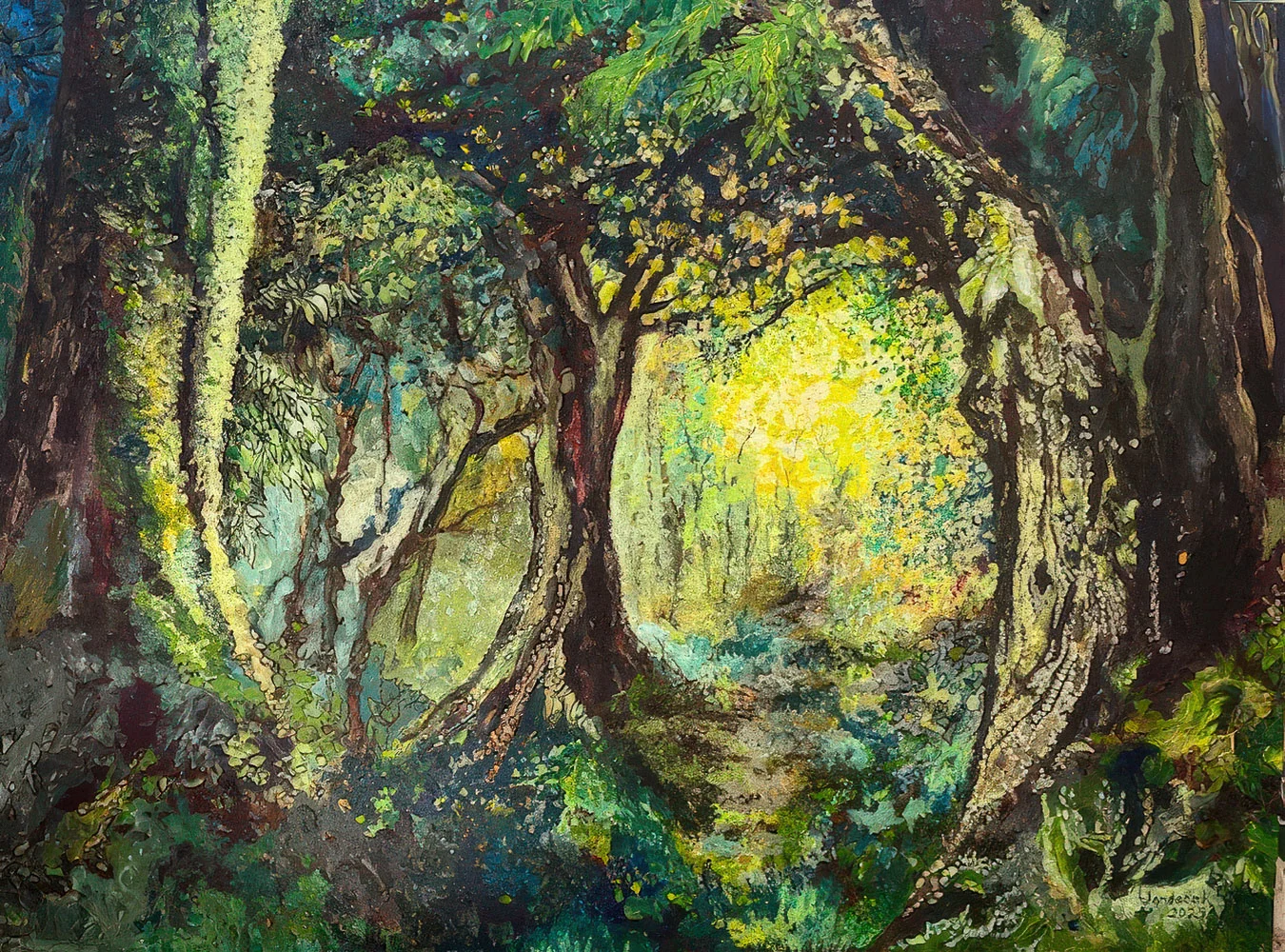Petr’s “Stations of the Cross” created for Trinity on the Hill Episcopal Church in Los Alamos, New Mexico, USA (unlike traditional “Stations of the Cross” which portray The Christ at each stop) – Petr, instead, depicts the Way of the Cross as seen by the convict. The only times when Christ is actually viewed is as if in out of body experience when Christ is dead. Petr strives for historical accuracy by actually using Latin, Greek and Hebrew/Aramaic.