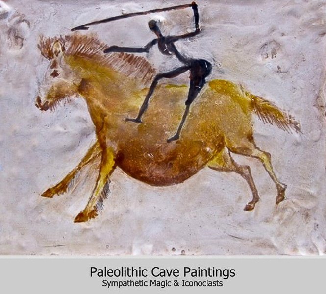 This is NOT a horse and rider. It is a horse and hunter. Horse riding had not yet been invented. Horse eating was common. Sympathetic Magic: If you capture the image well – you will also capture the animals flesh.If mare is pregnant sympathetic magic will ensure horse meat in the future. Iconoclasticism: Don’t draw your friends too realistically! It may capture their life essence (soul).