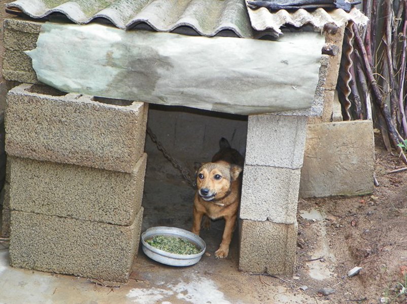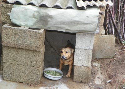 Most courtyard watch dogs were chained. I don’t think this was just because we showed up because our visits were unannounced.