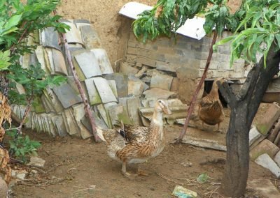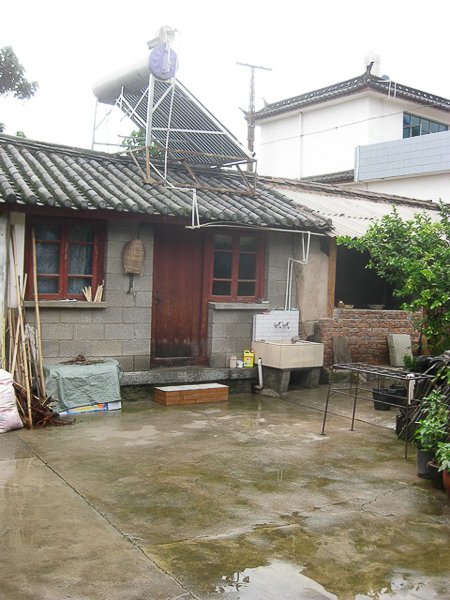 An addition to the roof of the house, a solar hot water heater! The house of our hosts is typical, based around a courtyard with a covered veranda, benches and tiny stools, like for preschoolers. The kitchen had a concrete floor. The son teaches elementary school. I’d say they are upper middle class, not near as poor as the two country families we met yesterday.