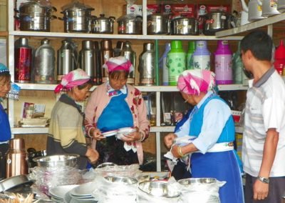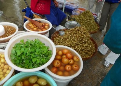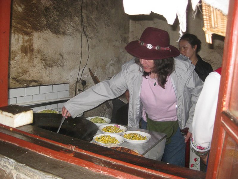 Another cooking lesson, the Three Tea Ceremony. #1 with tea leaves and roasted rice. #2 with cheese, sesame seeds along with ginger and brown sugar. #3 with tea and red chile and honey. All the cups were very small, enjoyable, and perhaps fun to try at home sometime. I have more details about the tea ceremony but have to locate the information.