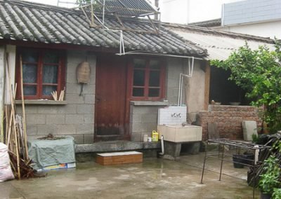 Notice the Ying and Yang on the pavement. It was incredibly lovely. The women who offered us tea were living in the buildings to the right of this photo.
