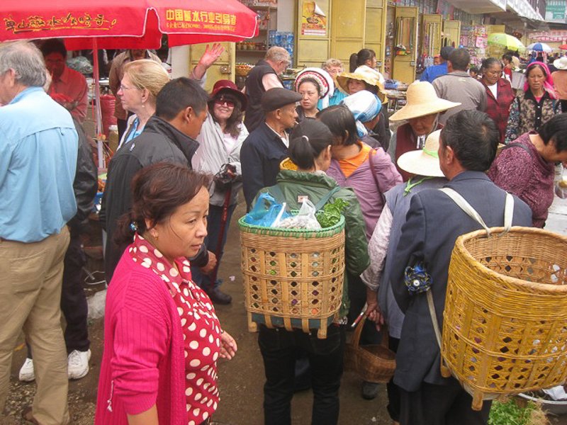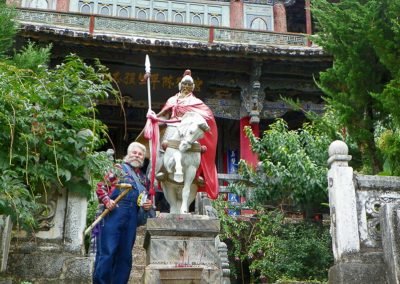 We stopped to see the Baisha Buddha murals and learned about the Naxi minority people. Our guide commented that Naxi women do all the work and the men like to be waited on hand and foot. The men on our bus wanted to convert to Naxi.