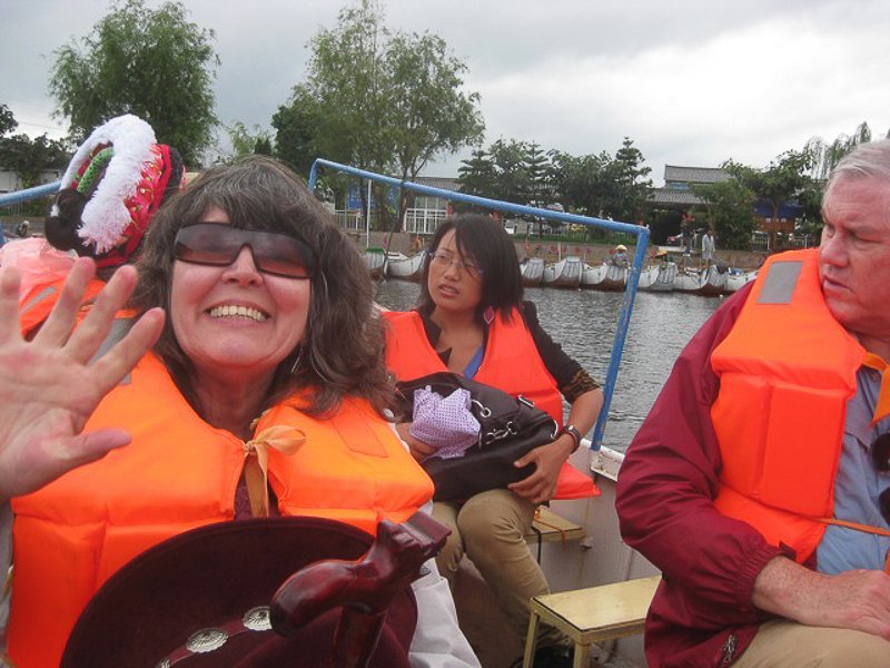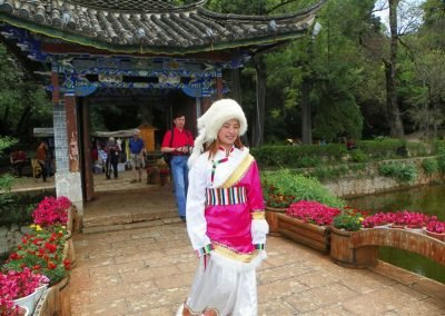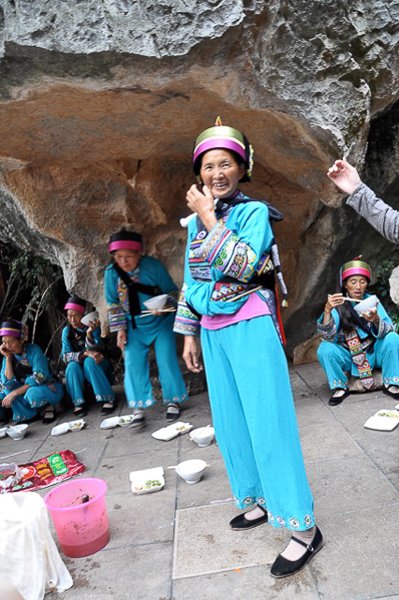 This is Lisa, our guide in Dali. She dressed in her traditional clothing. Considering it was raining, I was concerned about the elaborate hat and white slacks, but she managed to keep it relatively clean.