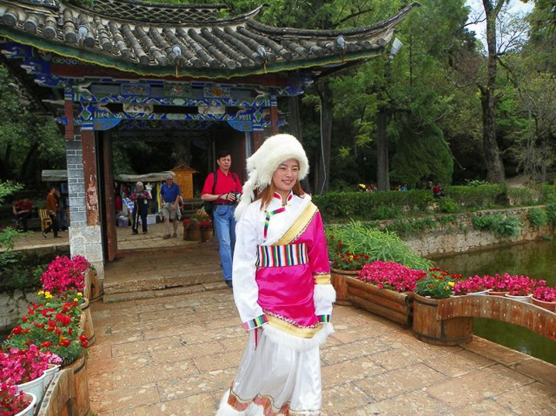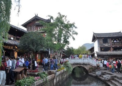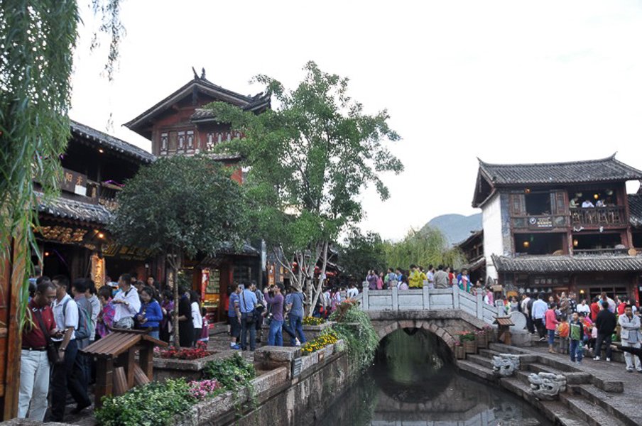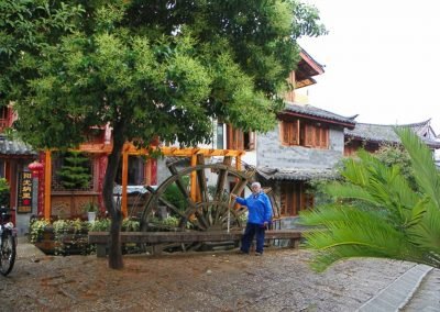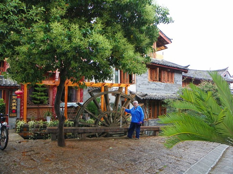 Checked into the Old Town Hotel, Lijiang. The bus couldn’t get into the old narrow streets, so we walked on cobblestones about 15 minutes through a maze of narrow walkways. Lijiang gets some 10,000,000 tourists a year. I believe it! It’s the Chinese version of Estes Park CO, only with a lot more people. There was a severe earthquake about 20 years ago but all of Old Town was rebuilt in the same old fashion.
