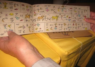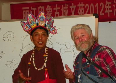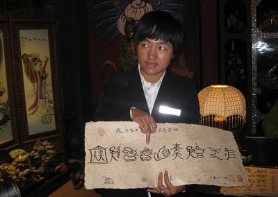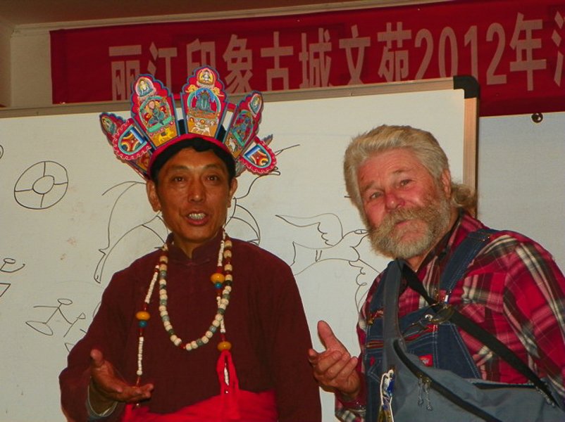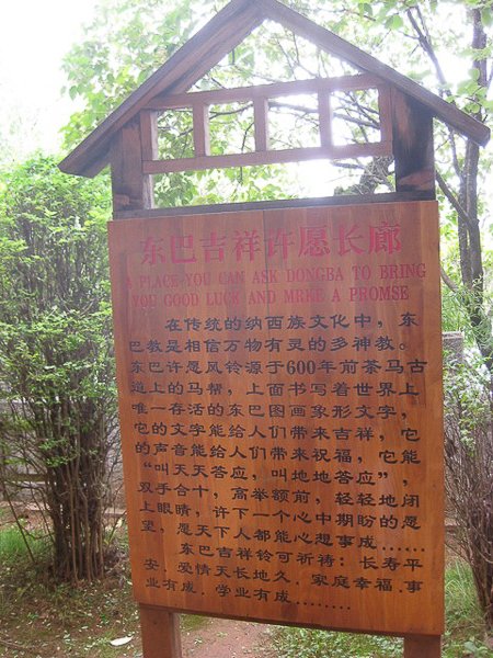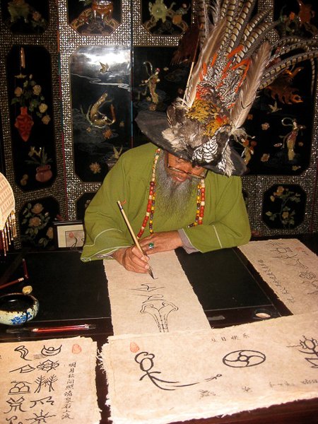 Dongba is the religion of the Naxi people. The Dongba have no pagodas or temples, just priests, music, dancing and pictograph writing. Their history goes back 1000 years. The heart of their religion is harmony between nature and people. Their history stories combine the Tibetian, Dali, and Lijiang peoples, and including a connection with Thai people across the border.