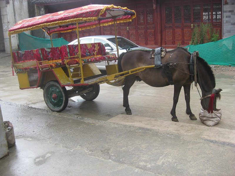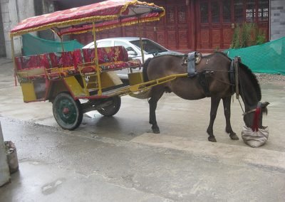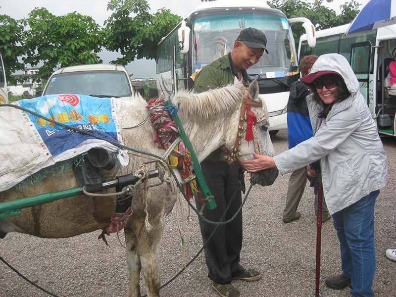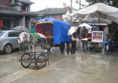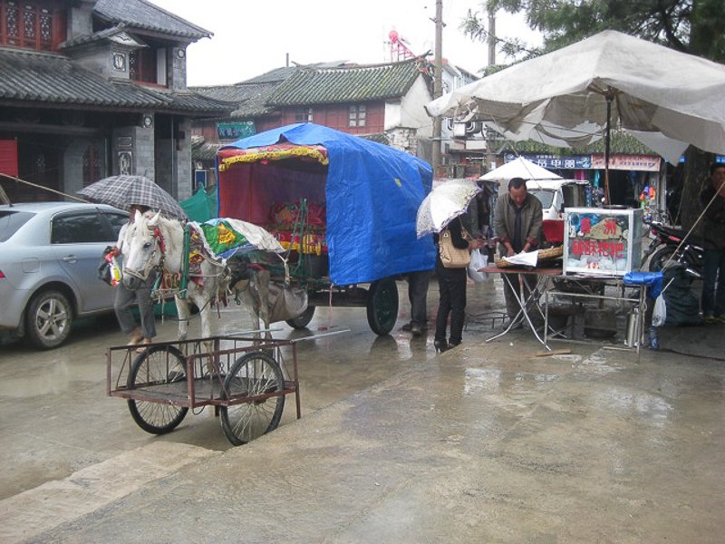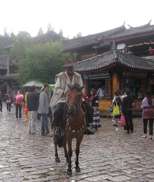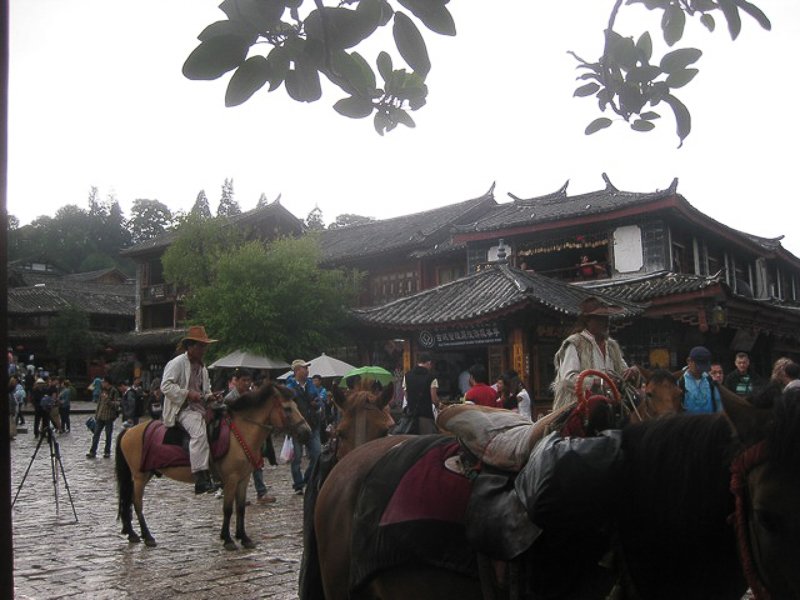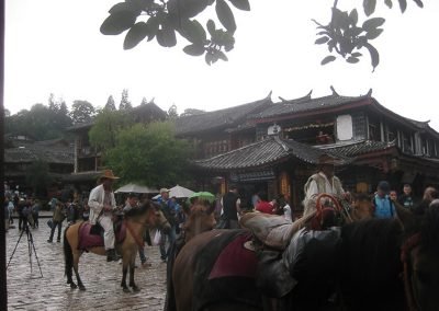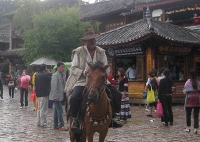 Photographers were also set up to photograph tourists on the horses. The rain continued off and on. The temperature was mild. I loved Lijiang. It’s population 1.2 million. Notice the padding/pillow on the saddle on the photo above.