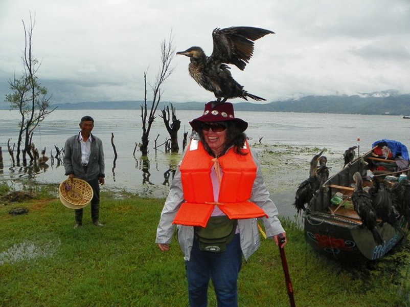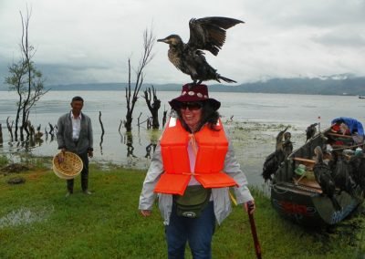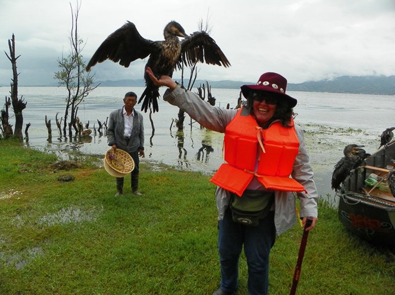 Our boat went to shore, along with the fishermen, to take photos of us holding the birds. Great fun.