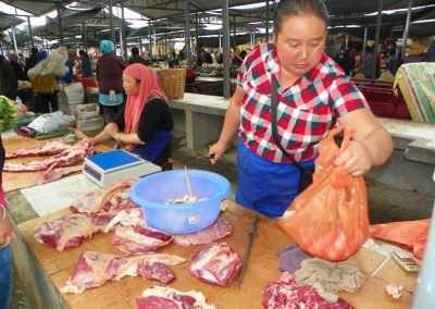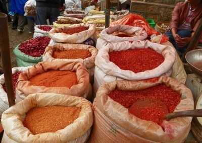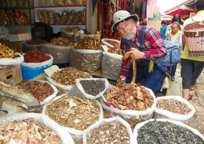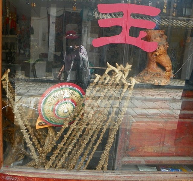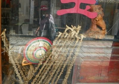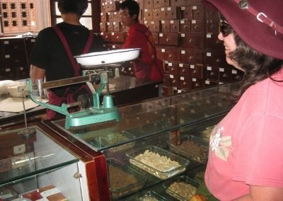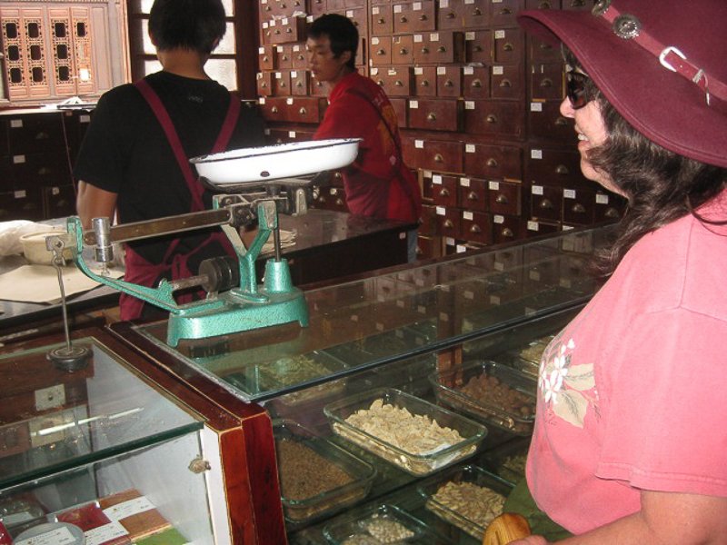 The 150 year old pharmacy was selling herbal medicines, a large establishment employing at least 15-20 people, a very busy place. It included a waiting room for people to see the doctors and many employees were making bundles of herbs to be boiled down in a pressure cooker, then the liquid becomes the medicine. The bundles were the size of grapefruits, filled with dry ingredients before “cooking”. The herbal remedies and modern medicine seem to go hand in hand with the herbal ones being more popular in the isolated countryside.
