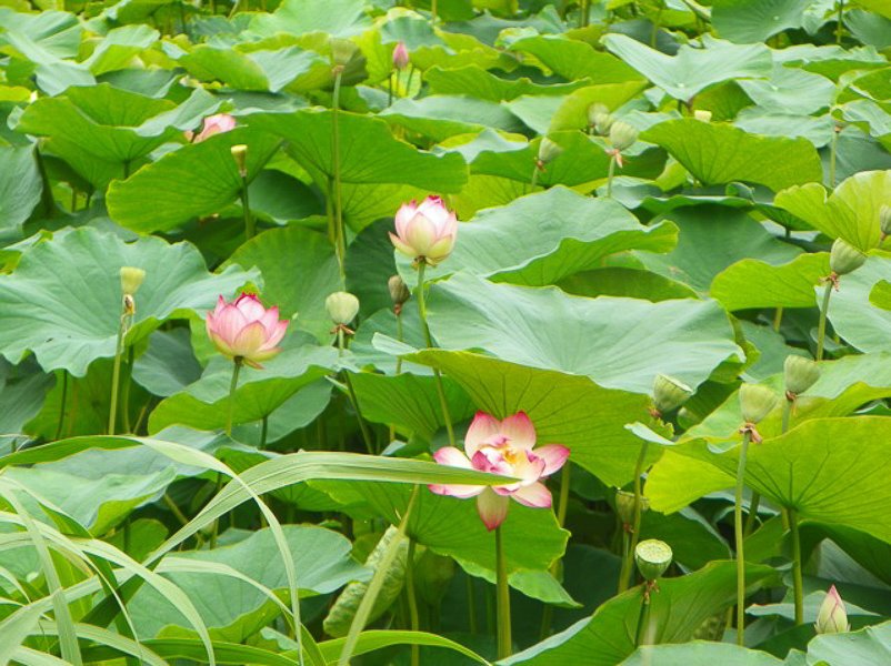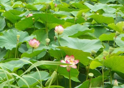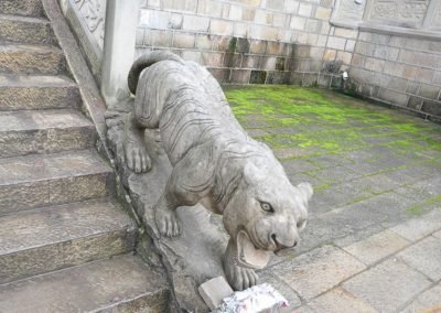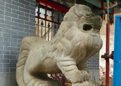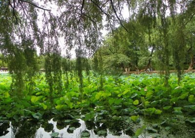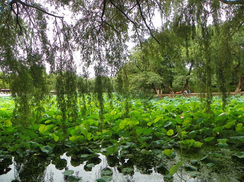 The entrance to the park included two stone lions. Ying and Yang, the male and female. Notice the female has a young cub. During the Cultural Revolution many of the old traditional sculptures, like these lions, were destroyed. When times changed new lions were put back at the main gate. Symbolism is quite important, everything has a deeper meaning, representing things like prosperity, longevity, happiness, freedom, etc. It was rather meaningful to our guide that she was born in the year of the buffalo, that it is her totem, good luck animal. The grounds of the park were lovely, including a pond covered in lotus blossoms, koi in the water, ducks, geese, bamboo, etc.