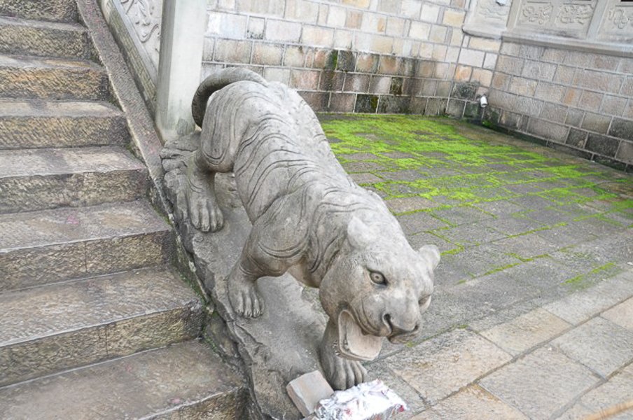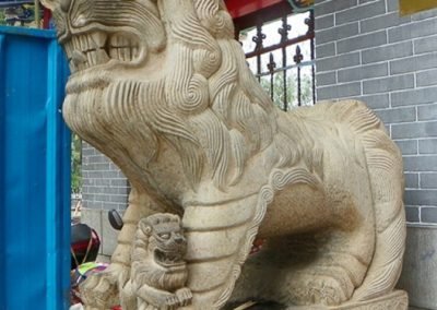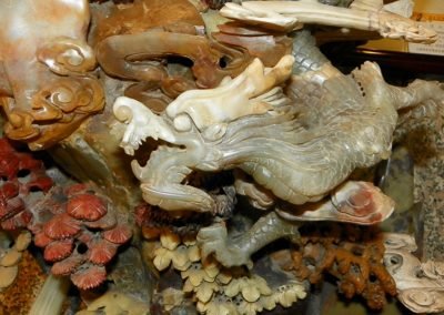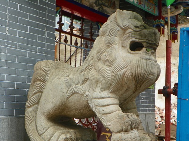 Frequently money is stuffed into the mouth or under paws of the jade dragons.