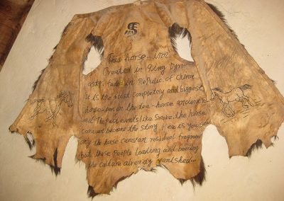 Inscription written on the inside of a horse hide vest. Again I was surprised it was in English.