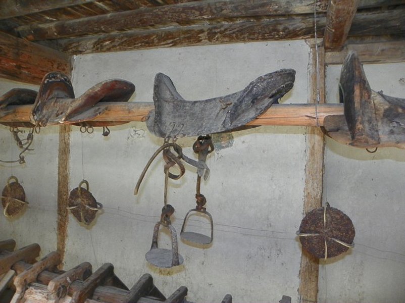 The horses, riders, paniers full of trade goods, all came into the protection of this “Inn”. The round ceramic container in the center was the horse water trough.