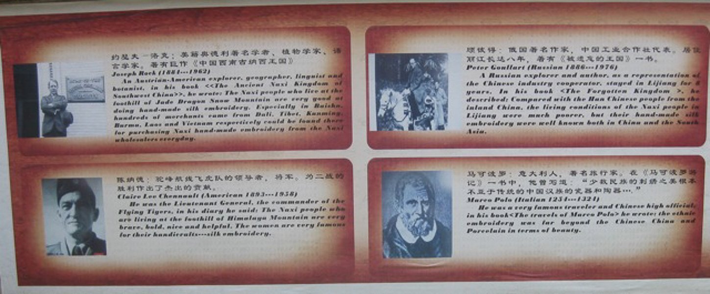 These are written testimonials regarding the embroidery from Joseph Rock, Austrian-American explorer, Peter Goullart, Russian explorer, and CL Chennault, American commander of the Flying Tigers. Also Marco Polo as mentioned above.