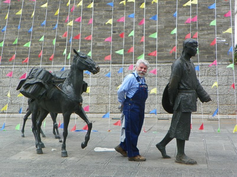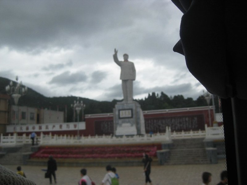 Not many signs of the Mao era, this statue was one of the few we saw from the bus window. Alvin commented that many were destroyed by earthquakes. Pete added that this one needed a stronger earthquake. Everyone in the bus laughed, including Alvin.