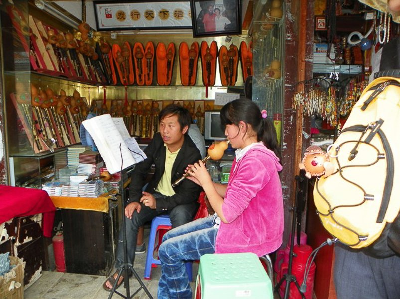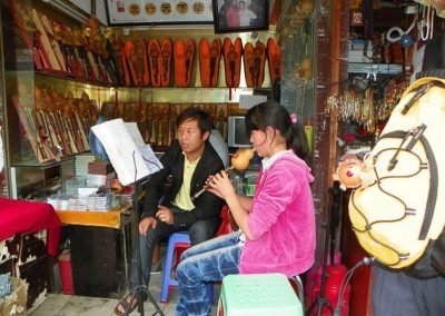 Nearby were some street stalls, In this one a girl was taking music lessons on a flute type instrument.