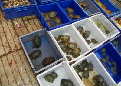 This first photo was taken from the bus, showing plucked ducks hanging from the vendor’s stand by their necks. Surprised me that the owner was nowhere to be seen.