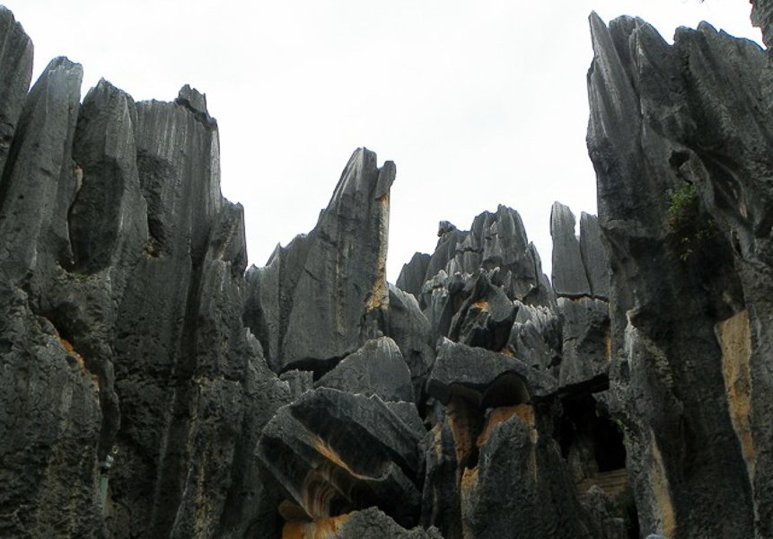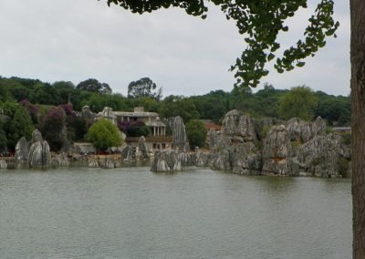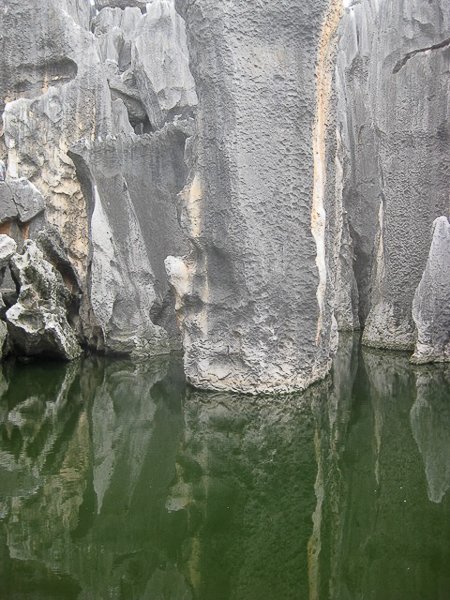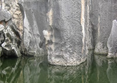 The Stone Forest is a limestone karsts. When the water retreated, erosion finally made the present day forest. Originally vertical, some were tilted at different angles in the 1833 earthquake. Most limestone is gray but with hard water deposits some parts look like pastels. Most surprising to me was the the natural pool of water, trapped among the stone forest. Fantastic reflections, large expanses, it was breathtakingly impressive. We walked for several miles on the trails, climbing up and down the rocky paths.