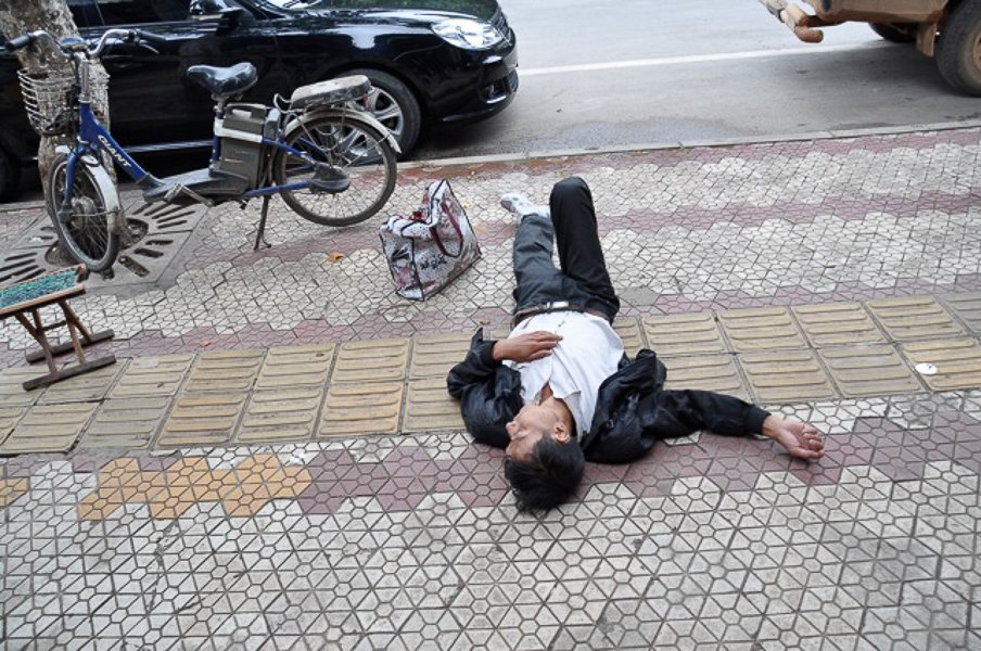 On the walk to the Formal Tea House we passed a man sleeping on the sidewalk. I have no idea what the circumstances were for him.