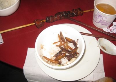 Dinner in Old Town included the usual dishes and also yak on skewers, fried silk worms and grasshoppers. The yak was excellent, the insects were OK considering they were fried in oil and spices. The grasshoppers were better than the silk worms in my opinion because they were crispier. The sea weed was rather yucky, sort of like eating boiled weeds.