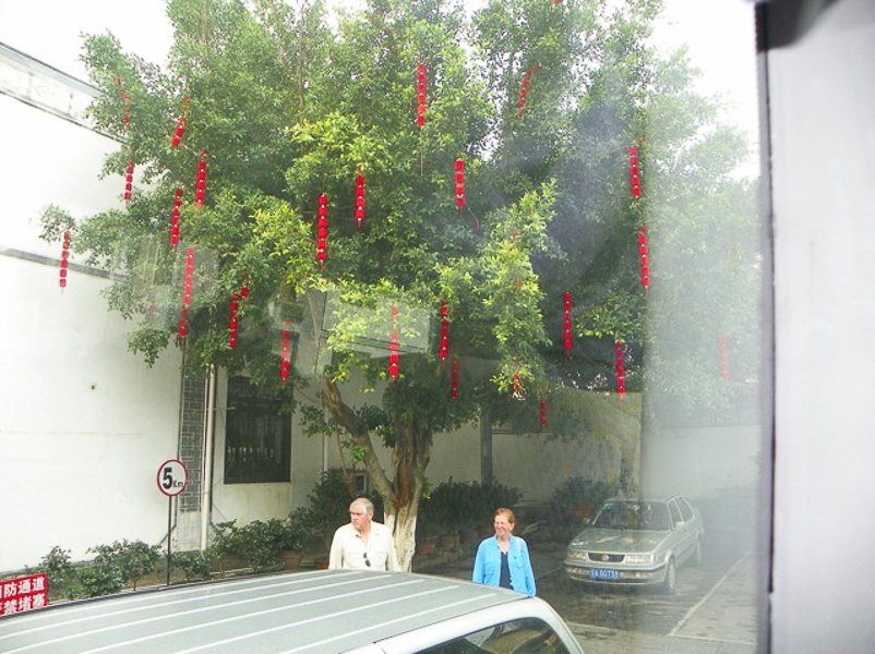 This tree is decorated with good luck charms at the hotel in Dali. Many trees and houses and businesses are decorated in red like this. I thought they were stunning!