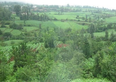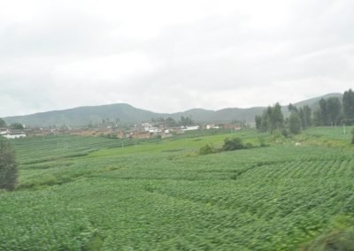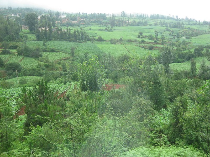 Even as we drove out of the city to the Stone Forest my admiration for the well tended fields continued. Instead of large farms with fields of the same crops, these were small plots, just an acre or so of a variety of vegetables, rice, soybeans, tobacco. The terrain was mountainous, or at least rolling foothills of the Himalayas. All the work was being done by hand, people, not tractors were tending the land. And each plot was meticulous. I saw one ox pulling a cart and some other cattle grazing.